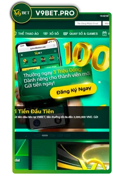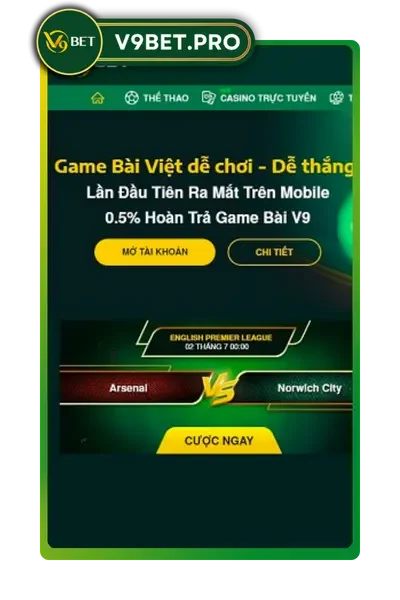 V9BET là nhà cái cá cược thể thao online đỉnh cao số một Việt Nam năm 2024. Được thành lập vào 09/09/2019 tại Việt Nam, V9 BET sở hữu hơn 999 sản phẩm game nổi bật như Cá cược thể thao trực tuyến, Xổ Số Lô Đề Online 1 ăn 98, casino game, nổ hũ, đá gà,… Truy cập Link V9bet đăng nhập ngay hôm nay để nhận code 99K trải nghiệm dành cho tân thủ.